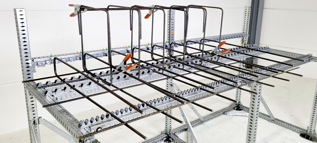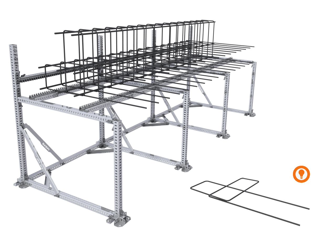 The SKEW JIG SYSTEM allows workers to position the reinforcement in exactly the right position, before fixing. The reinforcement is continuously held in place, making the entire assembly process more convenient and therefore faster. Thanks to the integrated markings, less time is spent on measurements, checks and repetitions. The standardized working method also ensures seamless teamwork.