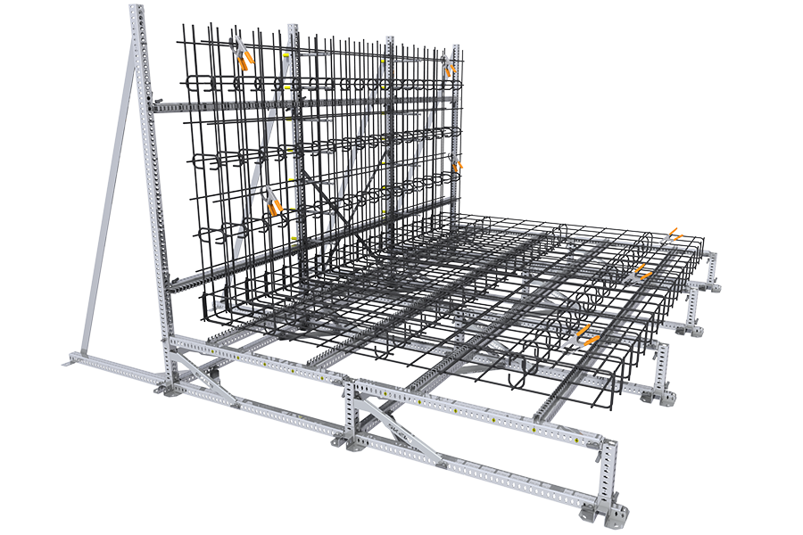 The stirrups can be quickly positioned at the exact distances, after which the bars can easily be fed through. The system is quickly adjusted for varying dimensions and configurations.